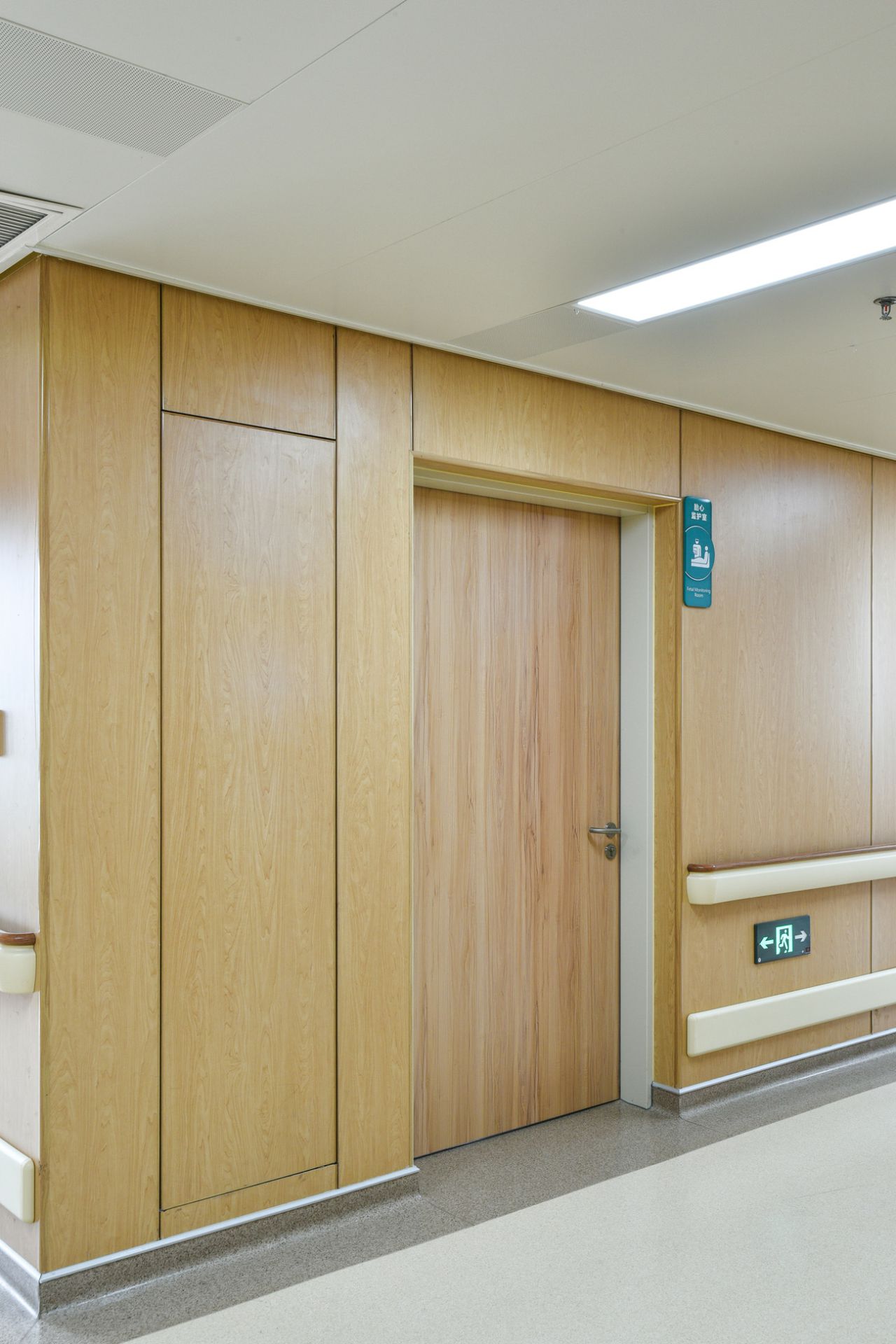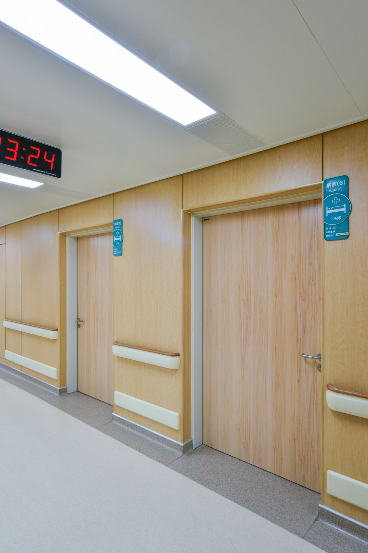 深圳俊瑶移动设备维护有限公司为山东省立妇产医院新建大楼项目中提供医疗环境整体解决方案,其中包含金属木纹病房门、金属诊疗室门、金属木纹双开门等。打造高品质人性化的医疗空间。
